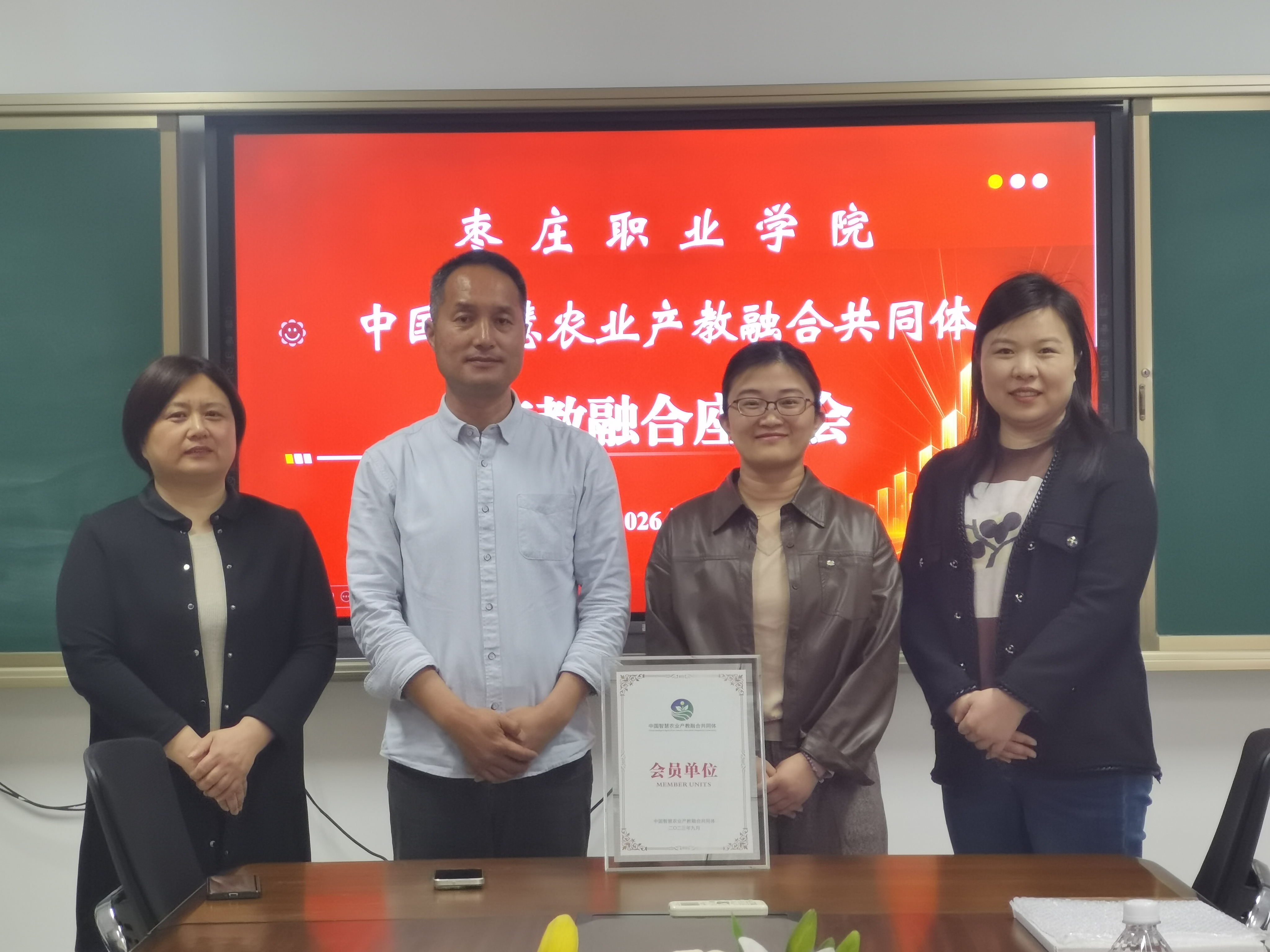 农学系负责人介绍了系部专业建设、实训基地发展及人才培养成果,双方围绕智慧农业专业升级、实训基地共建、师资队伍培养、学生实习就业等议题深入研讨,就后续资源共享、项目合作达成初步共识。经双方确认,枣庄职业学院农学系正式获批成为中国智慧农业产教融合共同体会员单位。