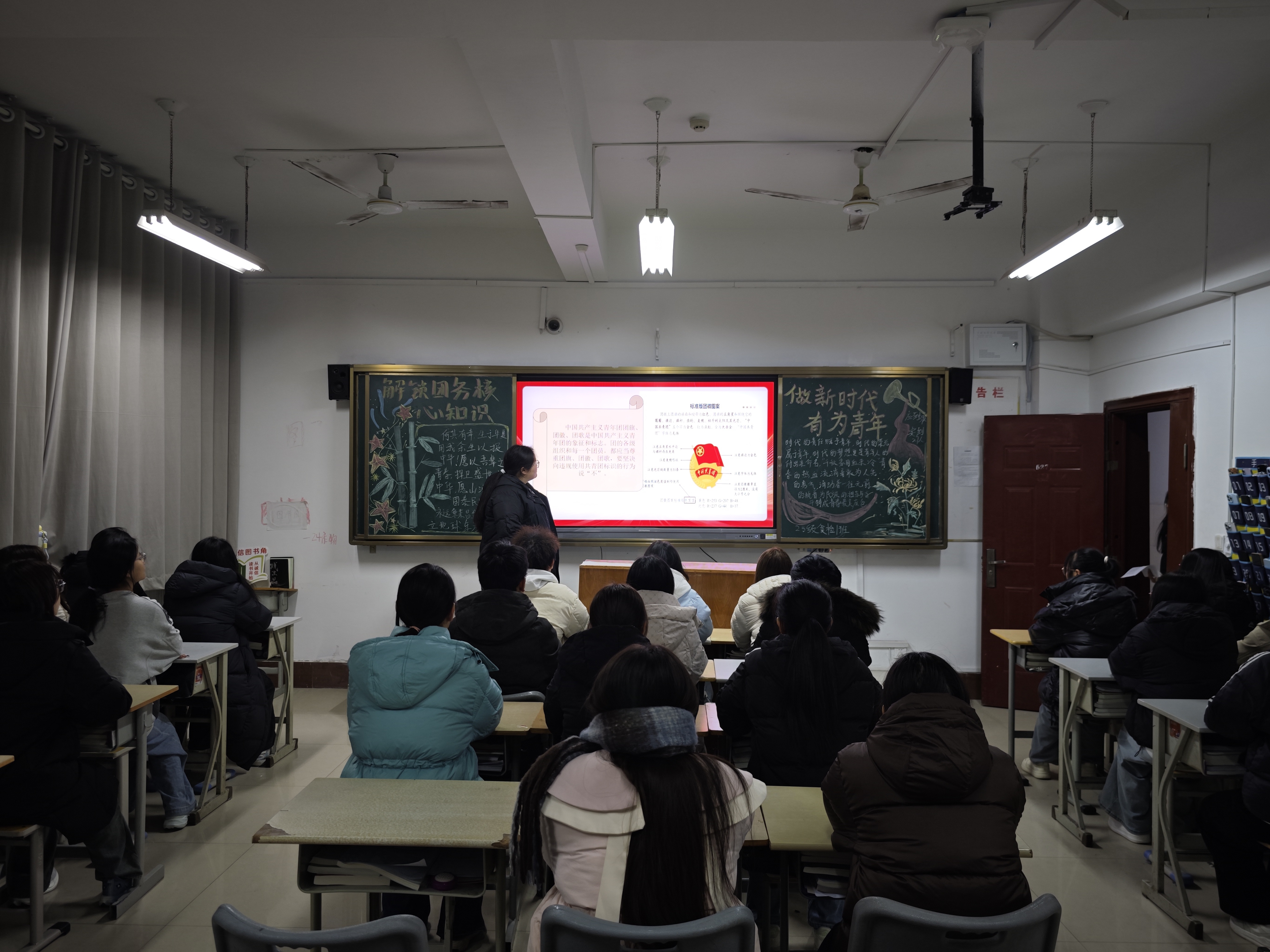 此外,团课还对团员组织关系转接,团旗团徽的规范使用细则进行了细致讲解,同时围绕入团申请的条件、流程与书写要求展开说明,为有志加入共青团的青年学生提供清晰指引。讲解过程中,讲解人结合实际案例解答团员疑问,现场互动氛围热烈,大家纷纷表示对团务知识有了更全面、更深入的理解,也更加明确了作为共青团员的责任与使命。