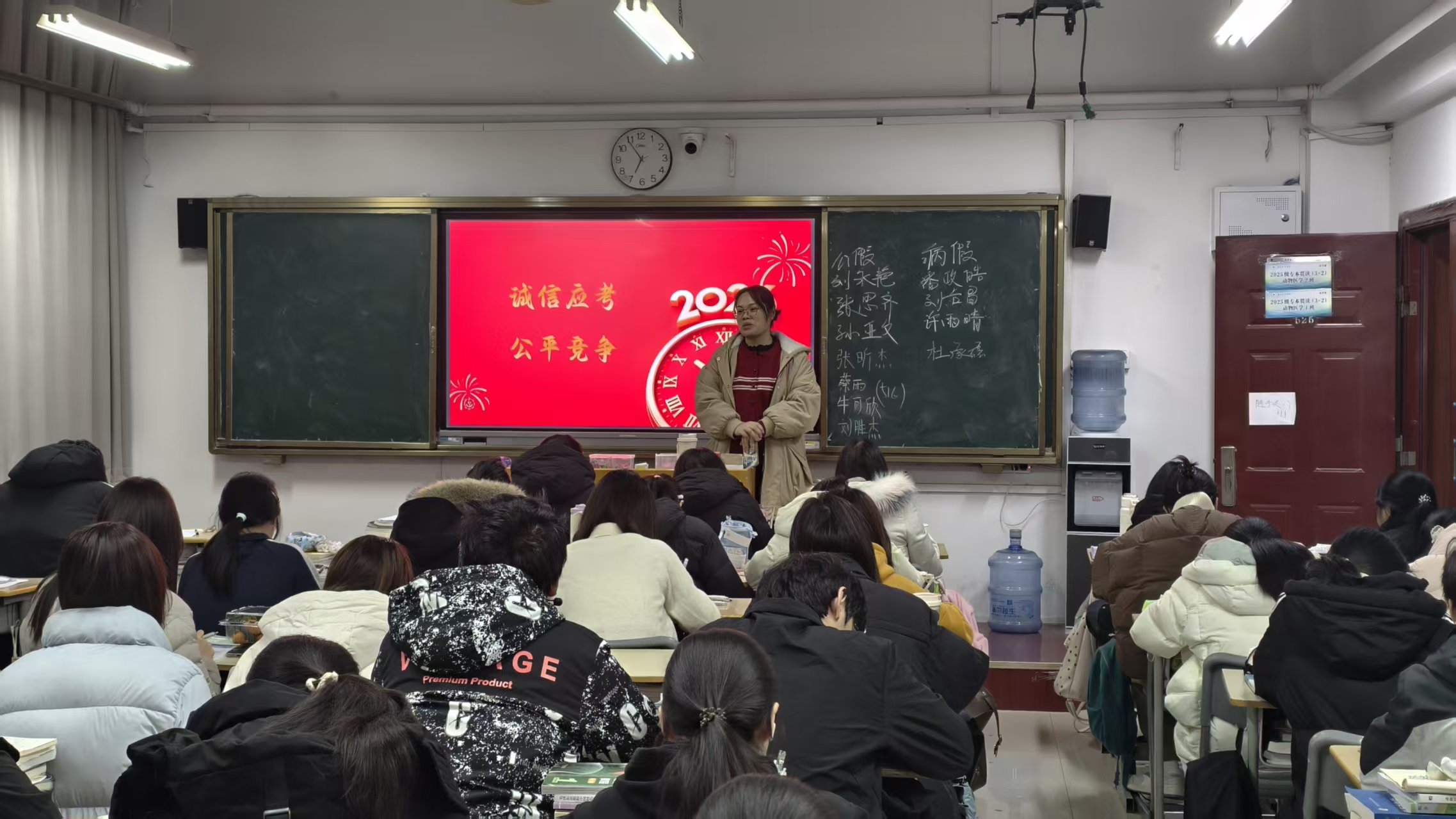 各班班委在班会上发出诚信考试倡议,呼吁全体同学树立“诚信考试为荣,违纪作弊为耻”的观念,互相监督、互相提醒,共同营造风清气正的考场环境;同时倡导同学们在复习阶段互帮互助,组建学习小组,交流复习方法,共享学习资源,在班级内形成比学赶超、互助共进的良好学习氛围,让每一位同学都能在备考中有所收获,在考试中展现真实水平。